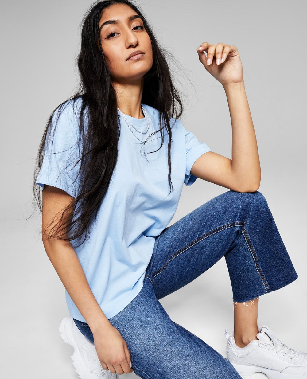 Maintain effortless style with this And Now This T-Shirt. Made from lightweight cotton, its relaxed fit offers superior comfort all day long. A chambray hue completes the look with a classic touch. Enjoy all-day comfort and great style with this Women's Relaxed Cotton Boyfriend T-Shirt.