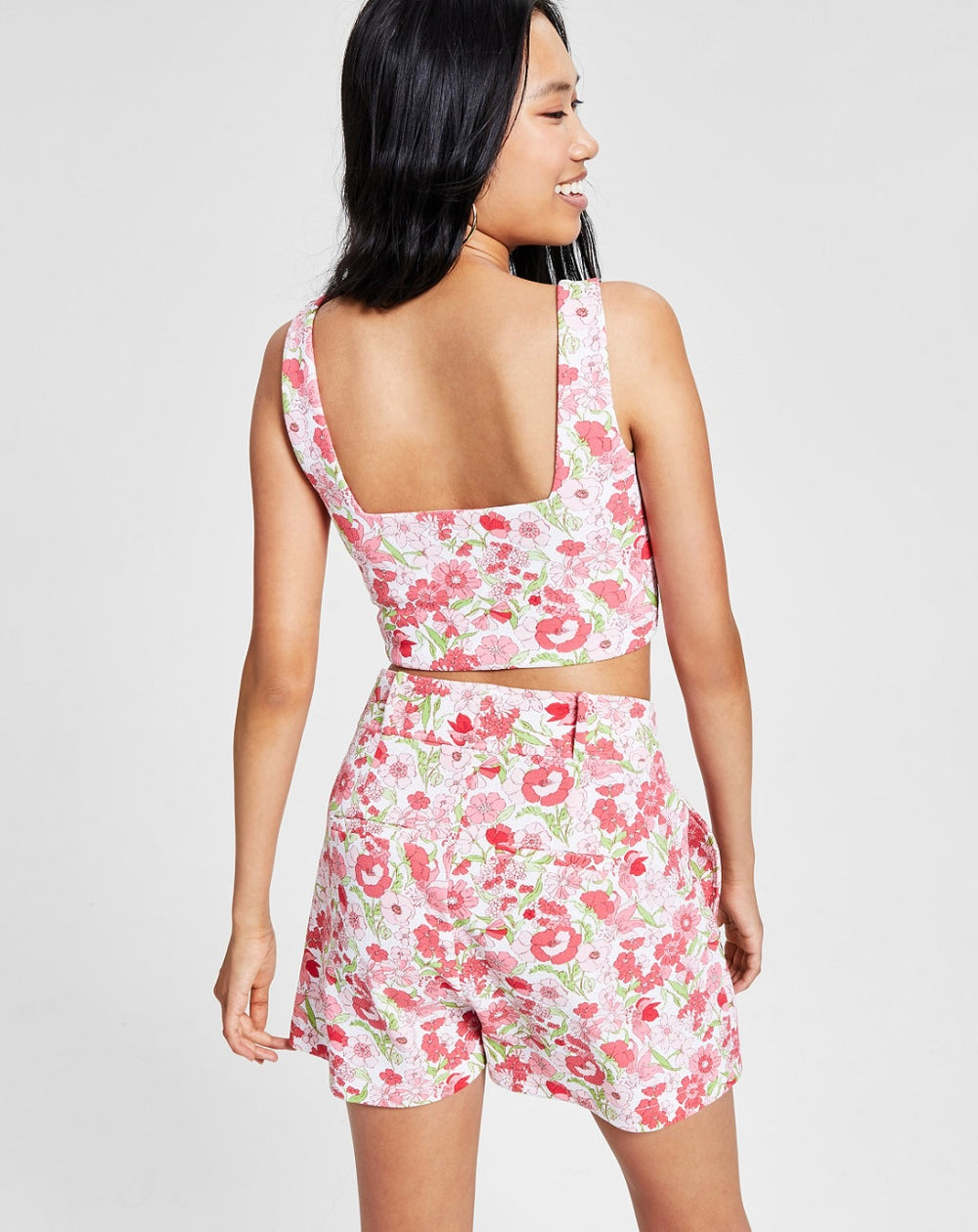 Welcome to effortless summer style - the Bar III Floral-Print Crepe Bralette Cropped Top. Its all-over floral dot design is perfect for bringing some eye-catching detail to your outfit and its cropped length looks great with shorts or jeans. Do you need a go-to summer top? You've just found it.