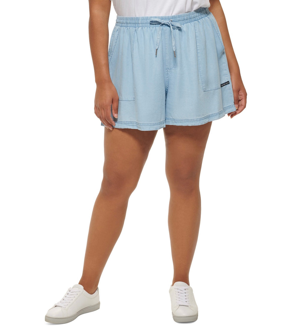 Calvin Klein Jeans Women's Trendy Drawstring Shorts Chambray Blue Plus Size 1X