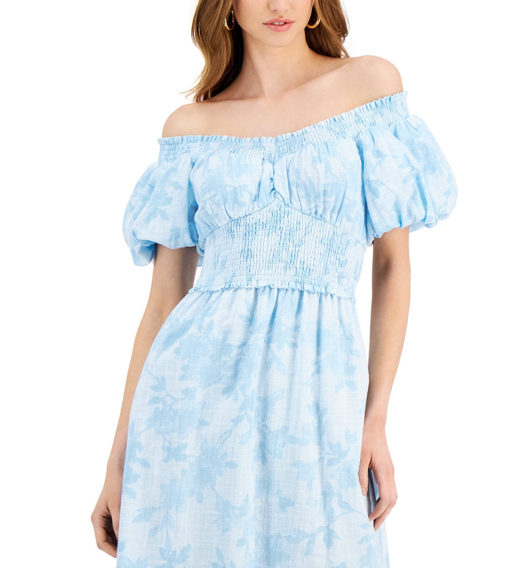 INC International Concepts Women's Puff Sleeves Floral Smocked Dress