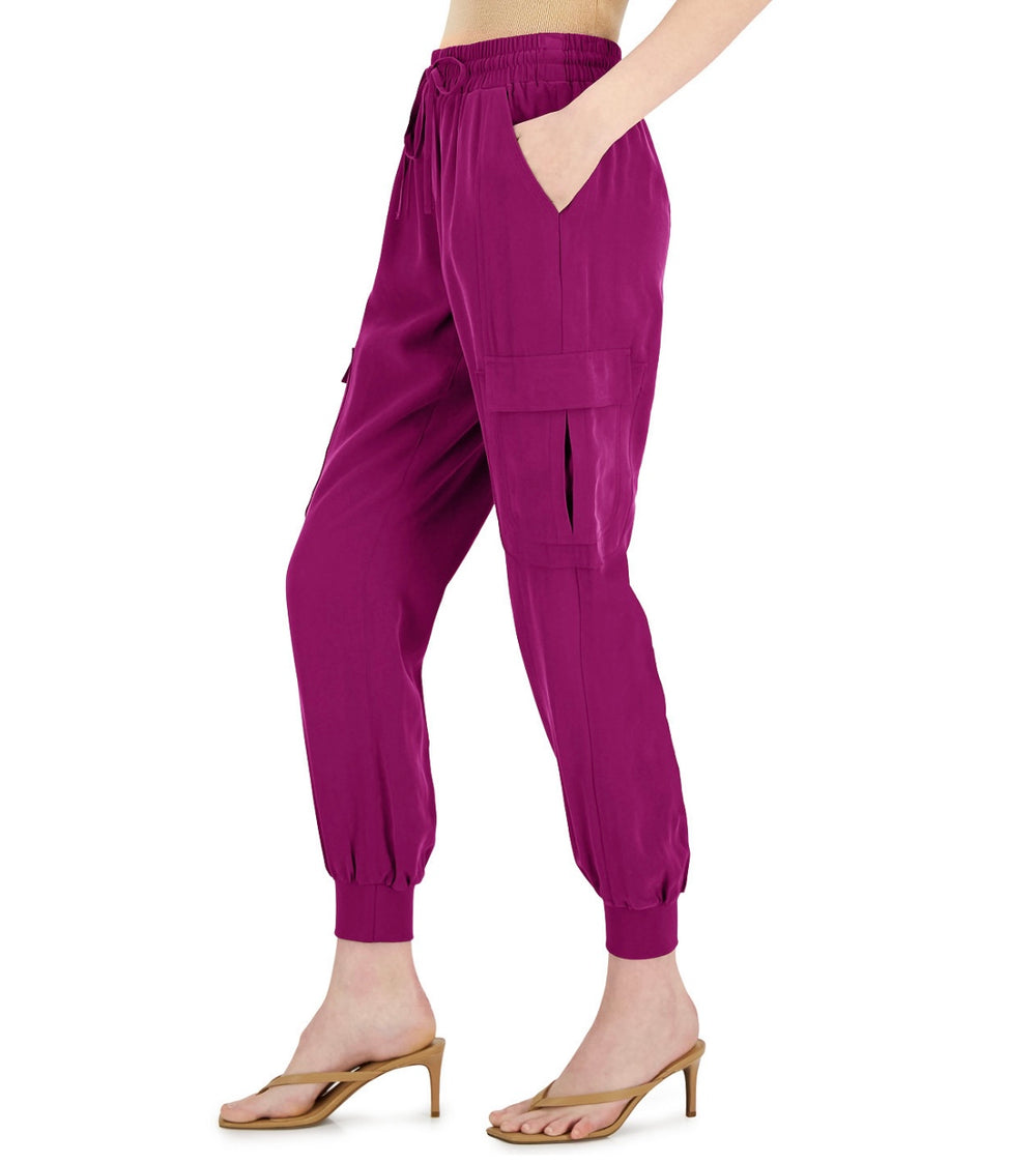 INC International Concepts Women's Pull-on Utility Jogger Pants Cranberry Rose