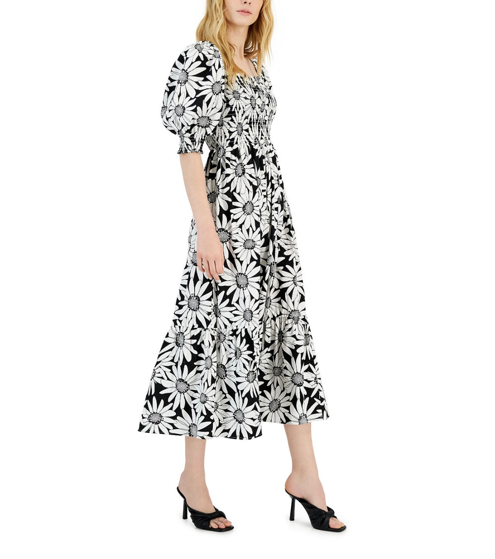 INC International Concepts Women's Square Neckline Smocked Dress Deliah Ditsy