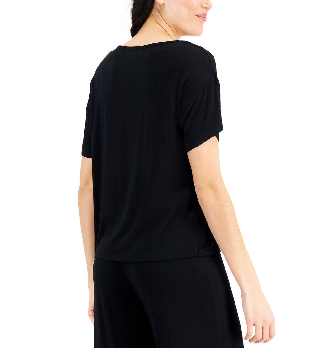 INC International Concepts Women's Super-Soft Short Sleeve Top Deep Black