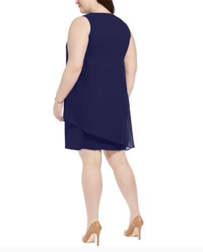 JM Collection Women's Asymmetrical-Overlay Necklace Dress Intrepid Blue Size PP