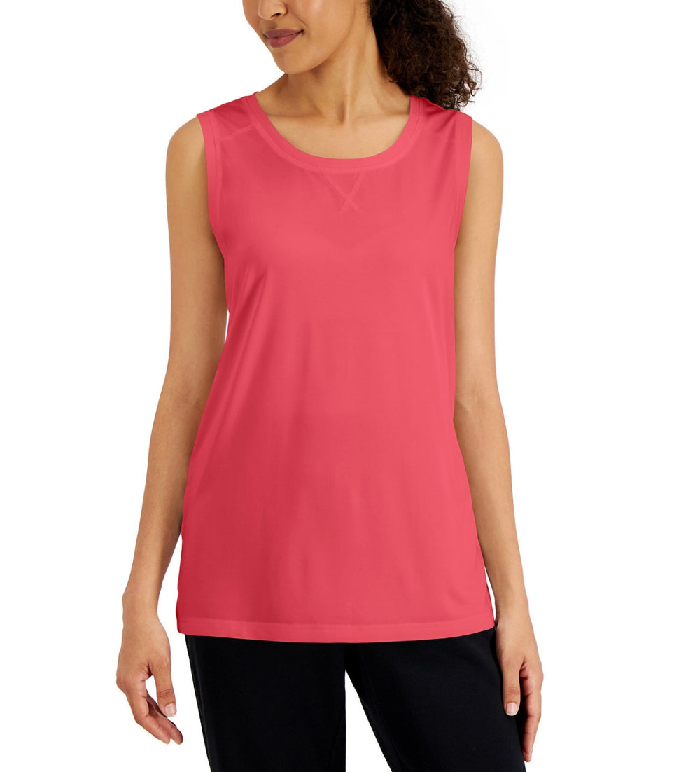 This peony coral Karen Scott Tunic Tank is perfect for daily wear. Made with a scoop neckline and sleeveless design, this tank top is an effortless mix of style and comfort. It's an essential piece for your warm-weather wardrobe!
