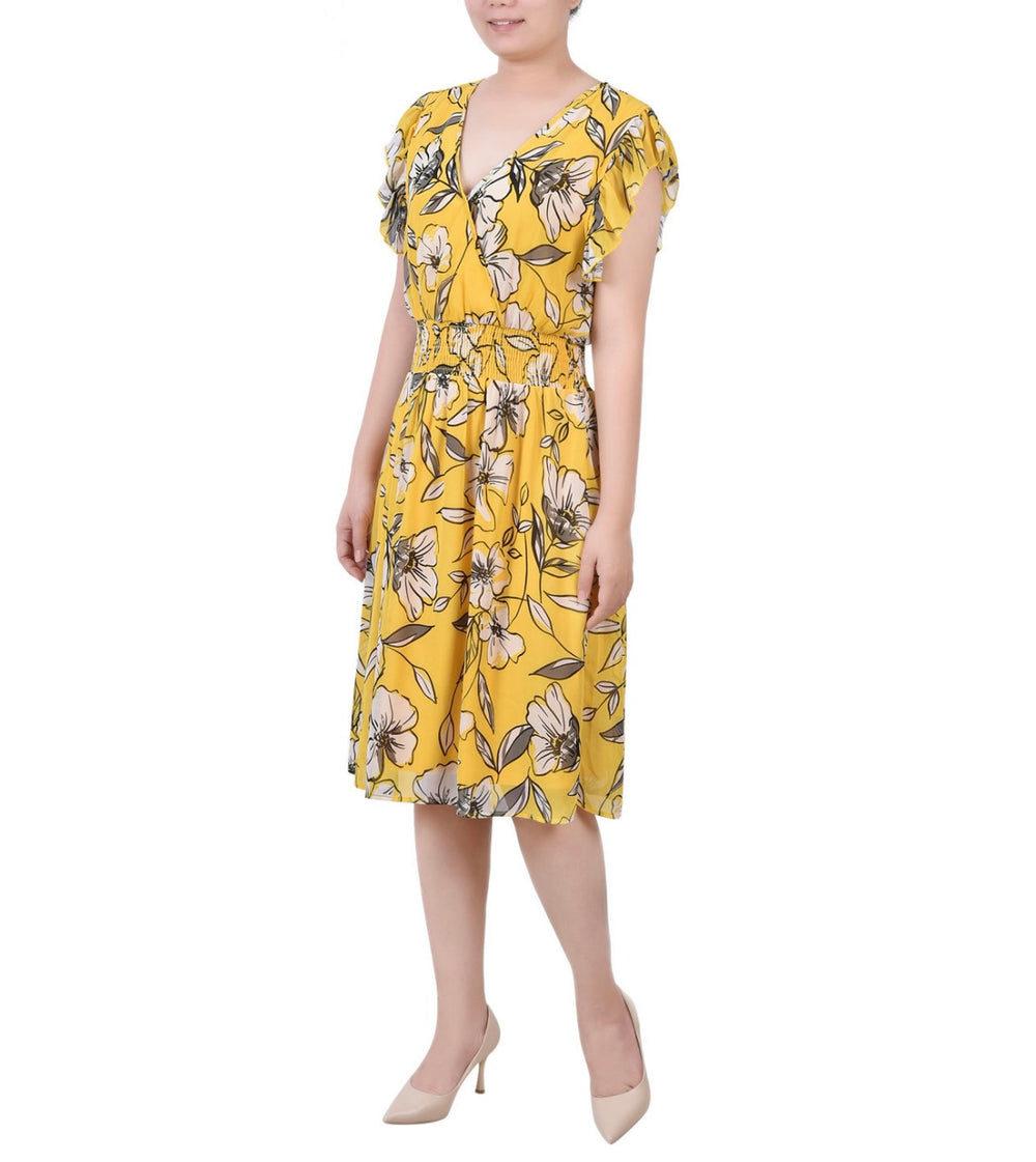 This elegant NY Collection dress is perfect for any formal event. Made from lightweight fabric in a flattering surplice neck, it features gorgeous flutter sleeves for an added touch of style. Perfect for petite frames, it's the ideal choice for special occasions.