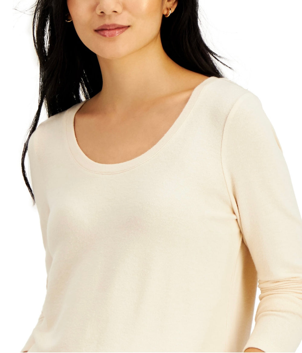 Style & Co. Women's Petite Heathered Draped Top Oatmeal Heather Size PL