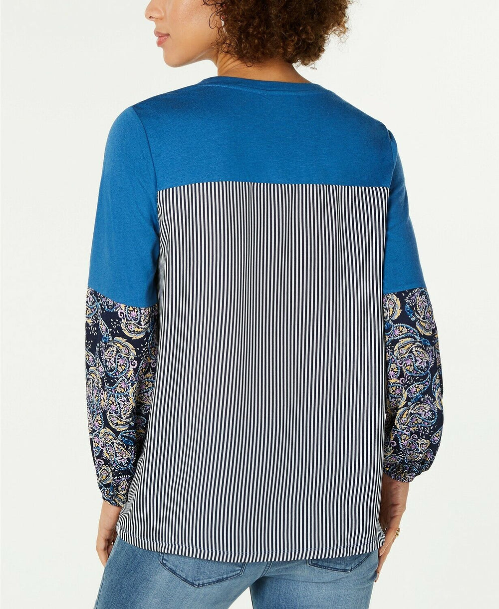 Style & Co. Women's Printed Crew Neck Pullover Top Long Sleeve Paisley Size L