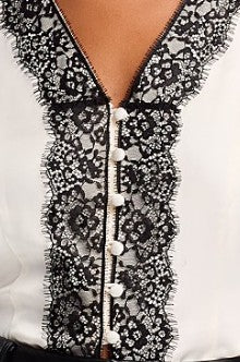 French Connection Women's Ennis Satin Long-Sleeve Blouse Classic Cream-Black