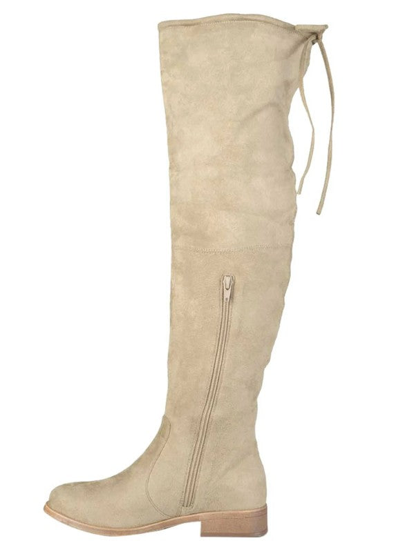 Journee Collection Women's Tie Mount Round Toe Block Heel Slip On Boots Taupe