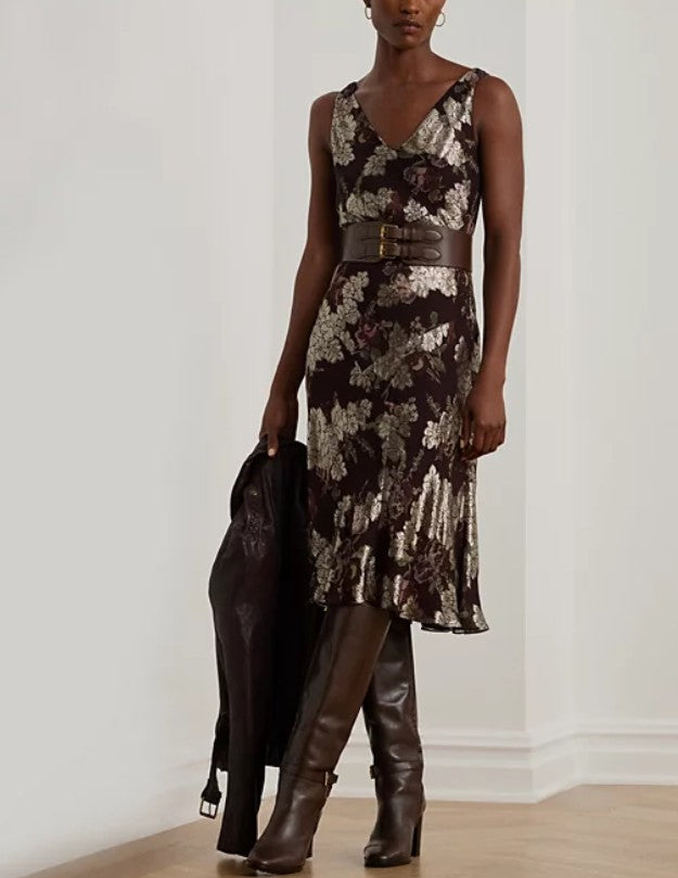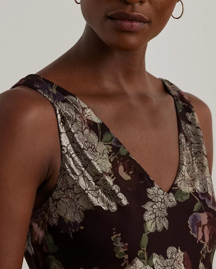 Lauren Ralph Lauren Women's Sleeveless Metallic Jacquard Dress Red Mu Size 16