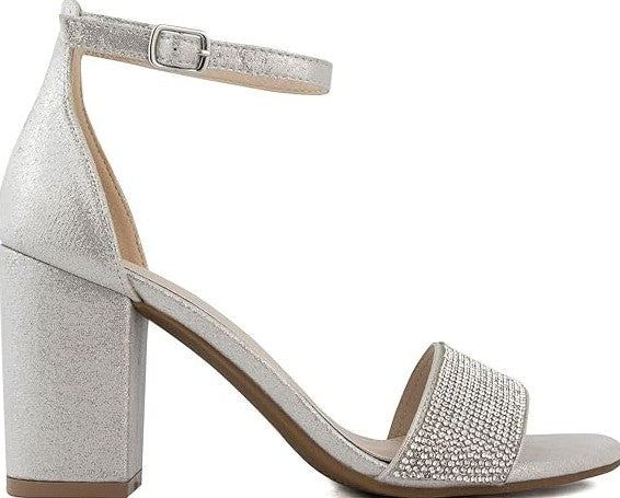 Sugar Women's Machelene Dress Heel Sandals Silver Rhinestone Size 7 1/2 M