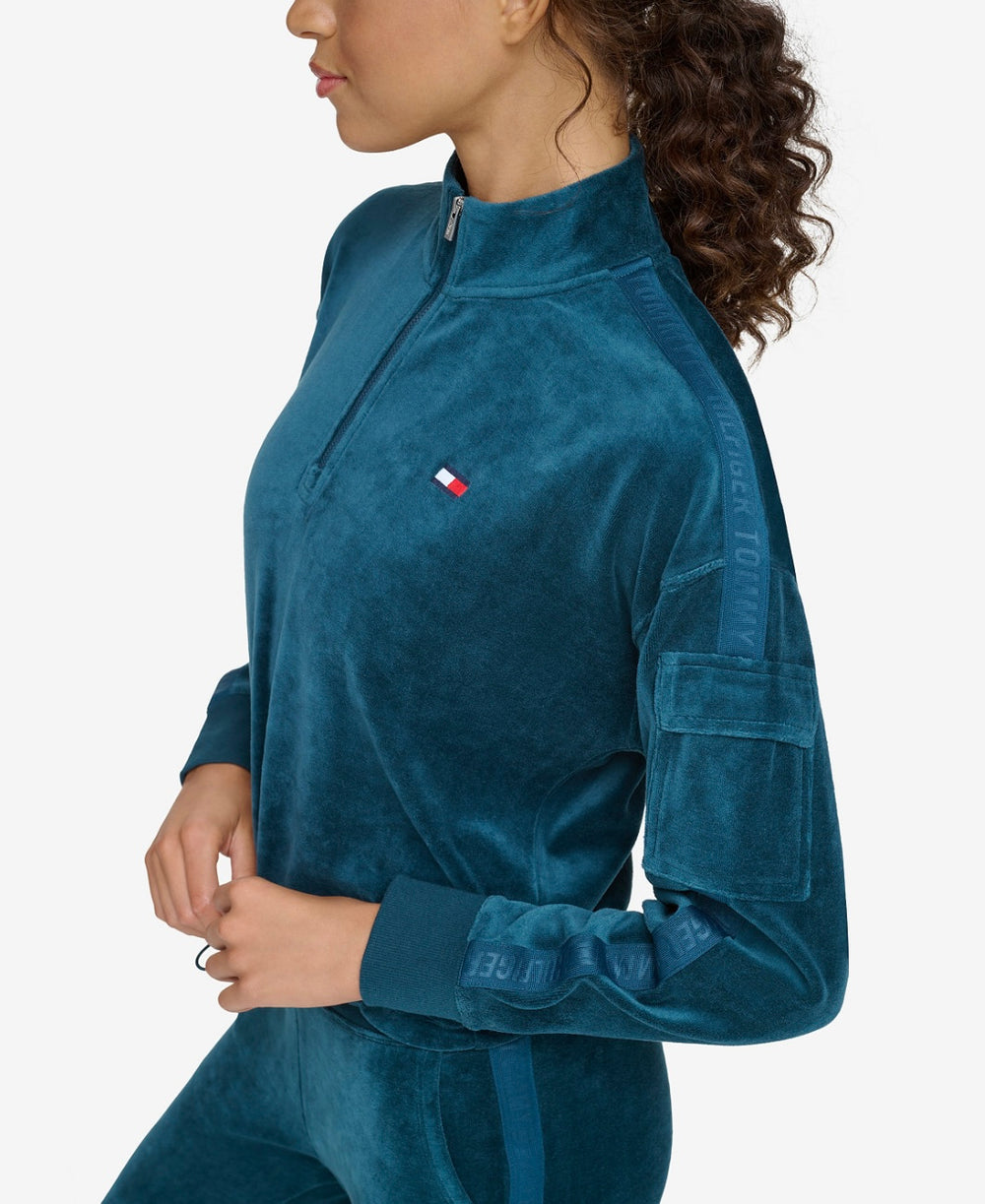 Logo tape on sleeves; flap pocket on left sleeve; bungee cord at hem